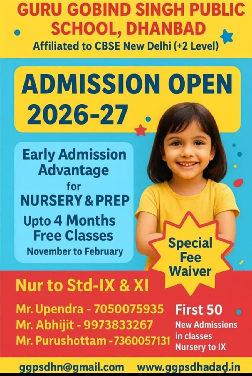 Stay updated with the latest admission notifications, guidelines, important dates, and announcements from GGPS Dhanbad.